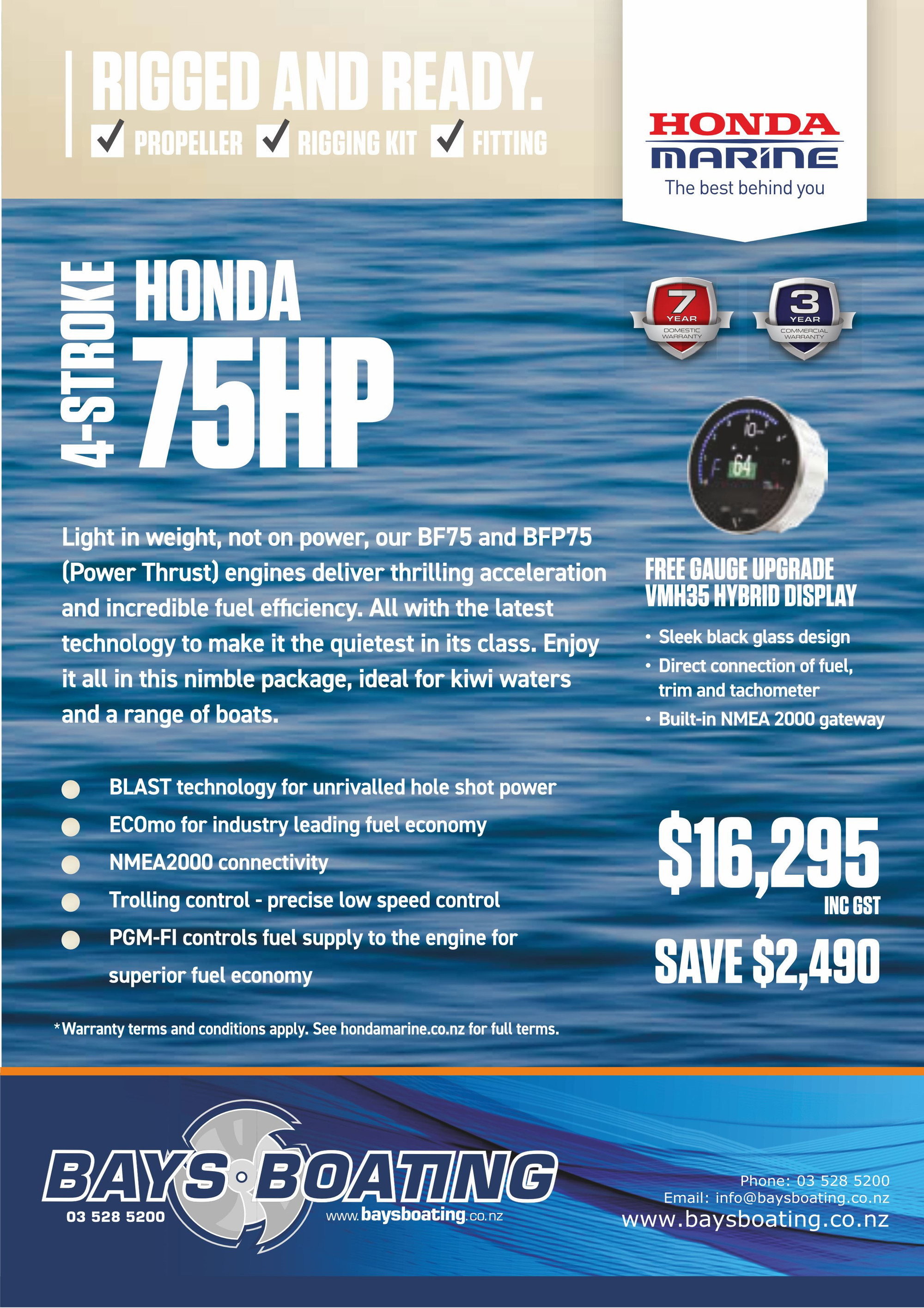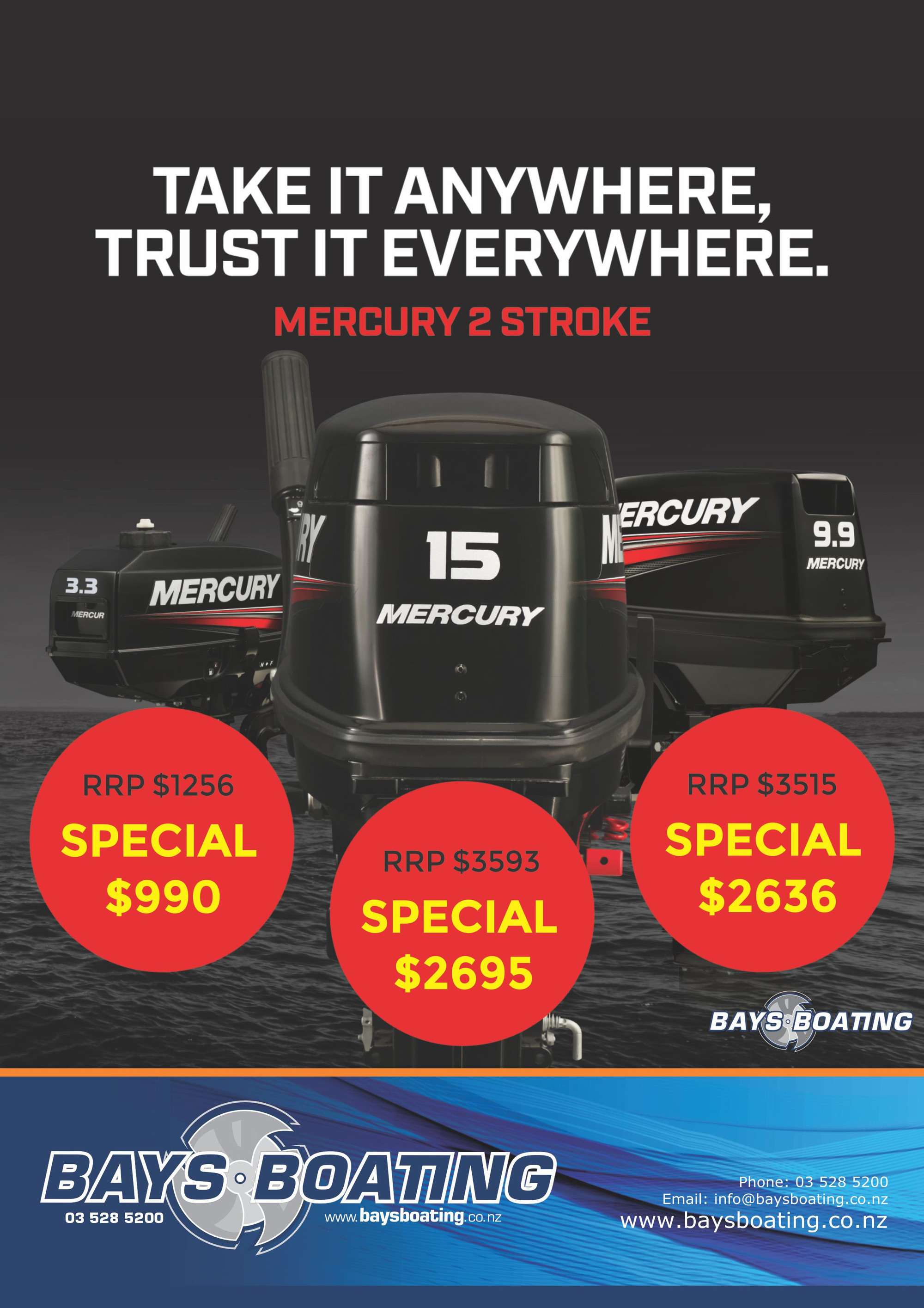 Bays Boating has a spacious showroom and purpose-built workshop with experienced mechanics for boat servicing and repairs. You can hire a boat and we offer finance and insurance on all new boat purchases. Buy the best in engines and boating accessories at affordable prices.