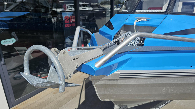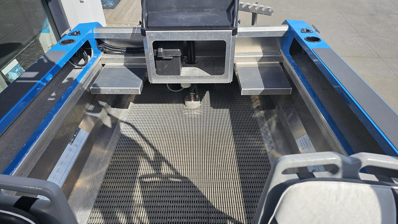 Suited to inshore and fair weather offshore fishing, the stepped pontoon design and full length hull make for economical planing. Coupled with the standard 120L under floor fuel tank, long days trawling for your favourite game or towing skiers awaits.